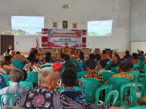 pada sesi pertama yaitu materi mengenai penggunaan dana desa dan bentuk penyalahgunaan yang kemungkinan terjadi di pemerintahan desa sehingga dengan adanya sosialisasi ini diharapkan pemerintah desa bisa lebih meningkatkan kinerja dan menjalankan pemerintahan desa sesuai ketentuan yang berlaku.